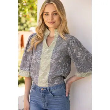 Step into fun with the Wide Half Sleeve Color Block Top in grey and green. Its roomy sleeves and bold color blocking add a playful twist to your everyday look, perfect for mixing comfort with a splash of personality.